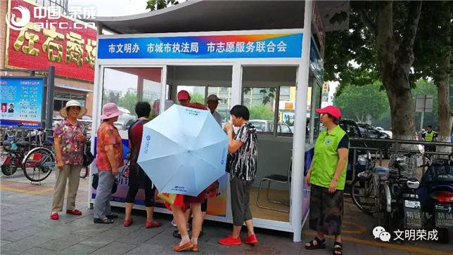 最近,在荣成街头出现两处耀眼的“文明驿站”。据了解,为助力荣成“创城攻坚”工作,更大程度地弘扬志愿服务精神,市文明办、市城市执法局、市公园管理处、市志愿服务联合会,在人流量密集的步行街和外地游客多的滨海公园设置志愿服务站,既为志愿者提供后勤保障,也为市民和游客提供便民服务。