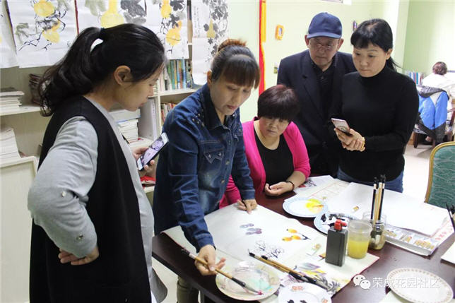 今天,花园社区国画班又精彩开讲了!学员们带着上节课的作业“画葫芦”,早早来到社区做准备。 ![]() 经过前两次课的学习,大家对国画兴趣高涨。徐老师对大家的葫芦一一点评,接着教大家学画葡萄串。 ![]() 徐老师认真示范,耐心讲解,学员们仔细观察,积极创作,大家十分默契。 ![]() 不一会儿一串串葡萄跃然纸上。一颗颗晶亮亮的,一团一团,挨挨挤挤,好不热闹,看着惹人喜爱。 ![]()